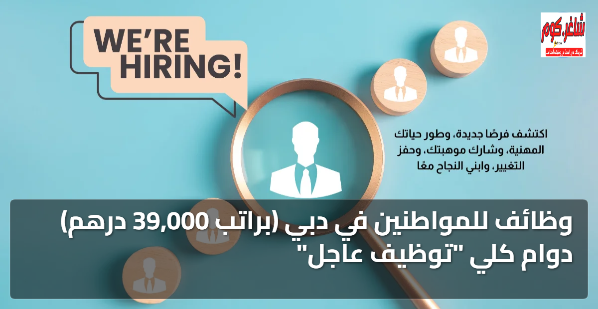 وظائف للمواطنين في دبي اعلنت عنها جهة محلية براتب عالي 39,000 درهم اماراتي شهريا وبيئة عمل احترافية والتوظيف بشكل فوري وعاجل بساعات عمل رسمية وسننشر لكم تفاصيل الوظائف المطلوبة ورابط التقديم عليها.