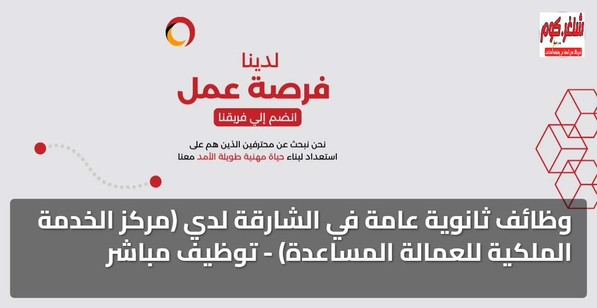 وظائف ثانوية عامة في الشارقة متاحة الآن لدى مركز الخدمة الملكية للعمالة المساعدة حيث أُعلن عن فرصة وظيفية مميزة للعمل في إمارة الشارقة وتُعد هذه الفرصة مناسبة لحملة شهادة الثانوية العامة وسننشر لكم تفاصيل الوظائف المطلوبة ورابط التقديم عليها.