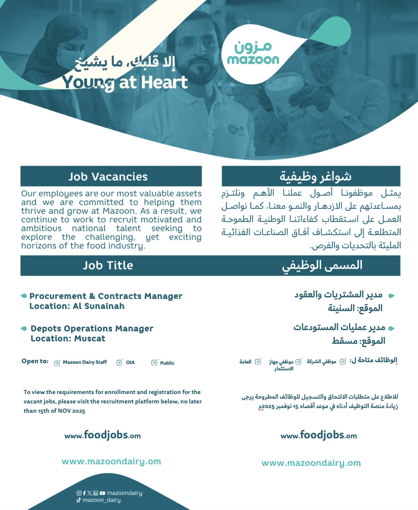 شركة مزون للالبان وظائف عمان اليوم للجنسين في مجالي المشتريات والعمليات لجميع الجنسيات ولمؤهلات مختلفة وها قد نعرضها لكم عبر موقعنا موقع شاغر دوت كوم