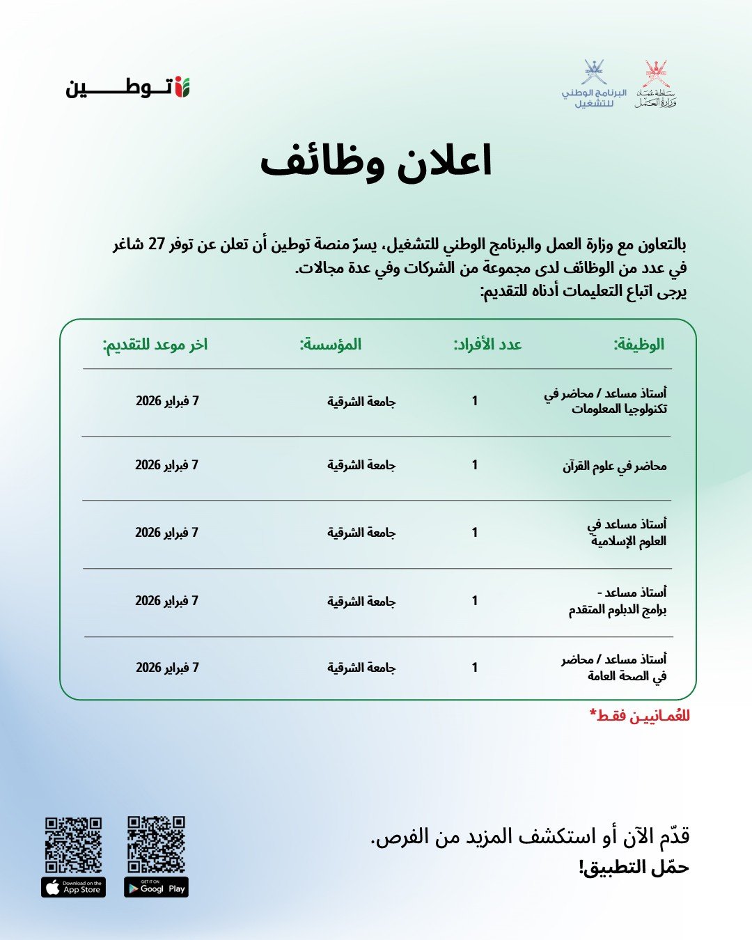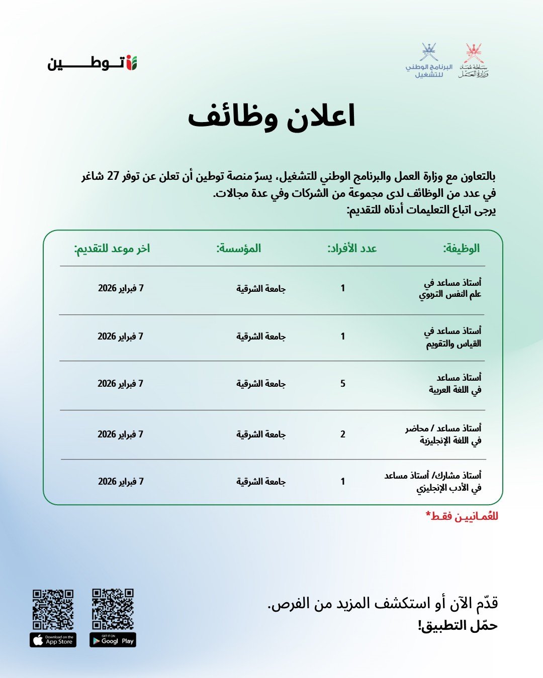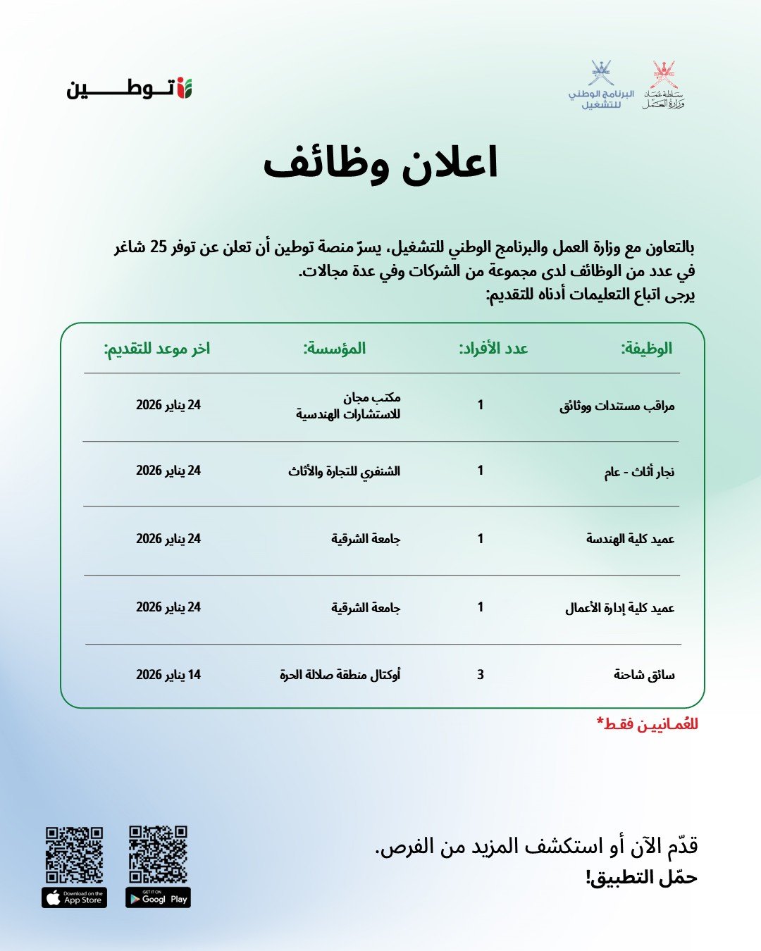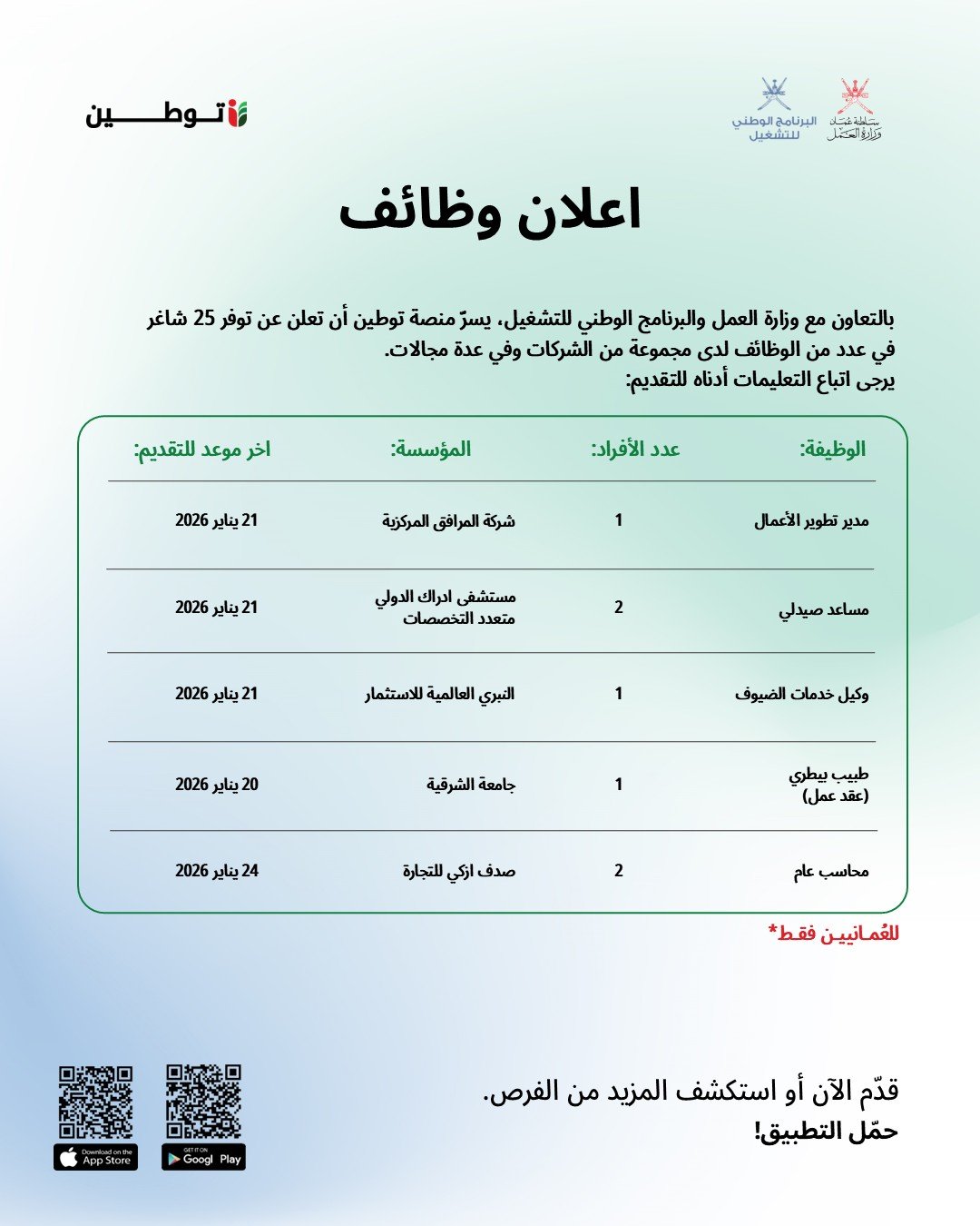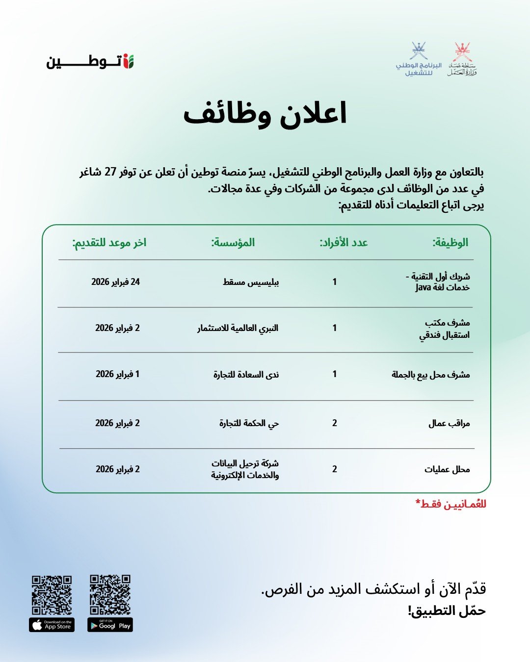 توطين للباحثين عن العمل وظائف عمان اليوم