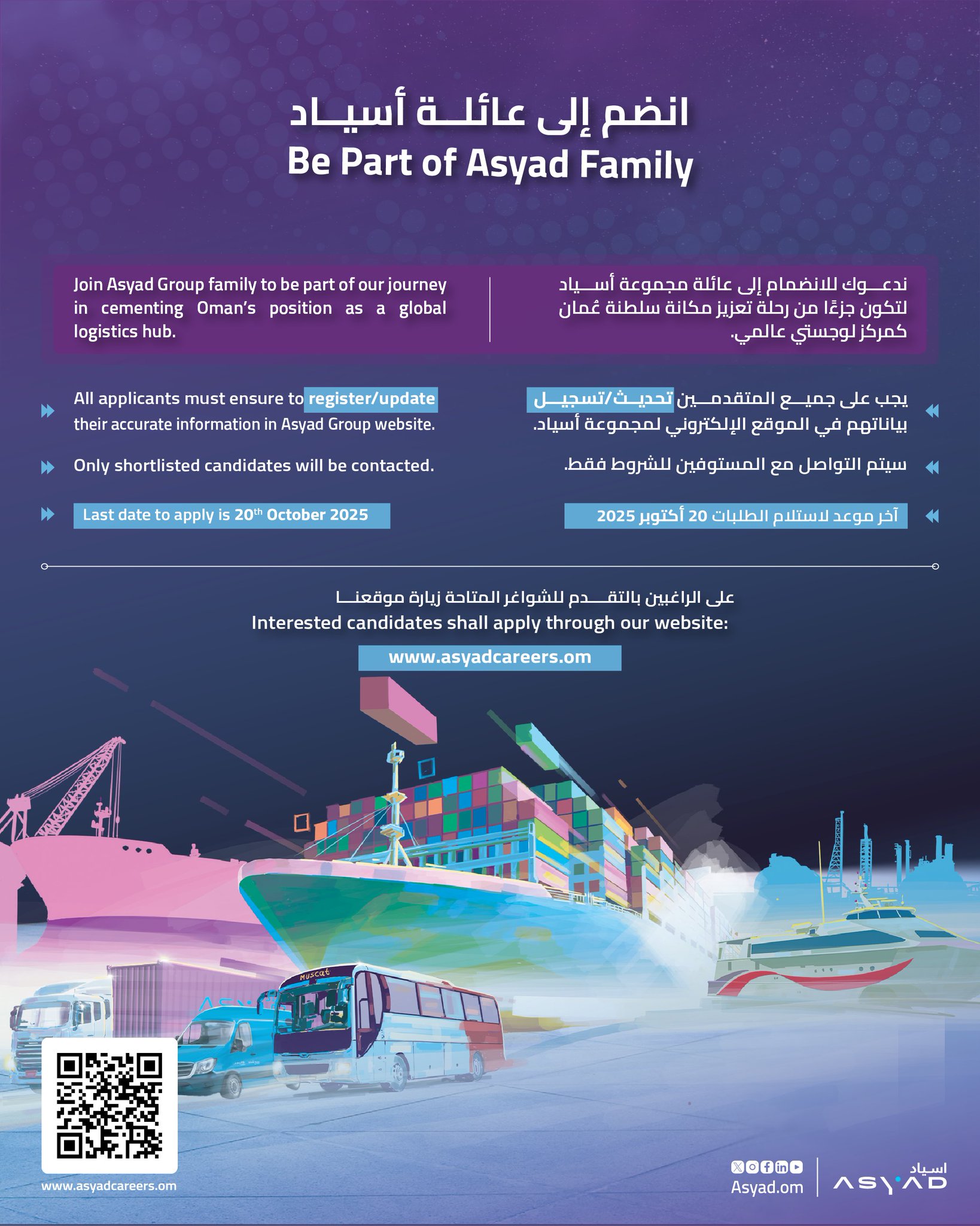 وظائف شركة أسياد عمان (إدارية – هندسية – فنية – لوجستية)