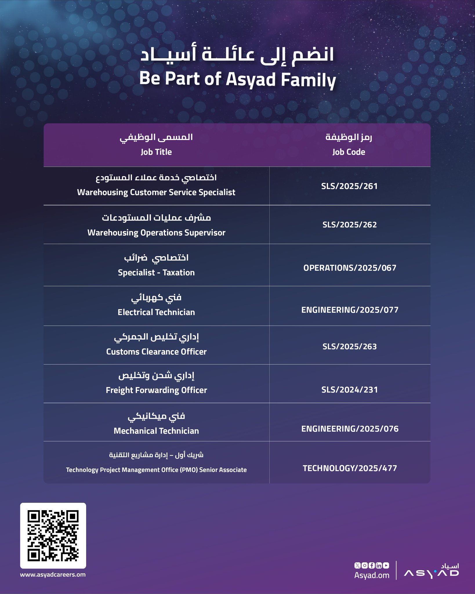 وظائف شركة أسياد عمان إدارية هندسية فنية لوجستية