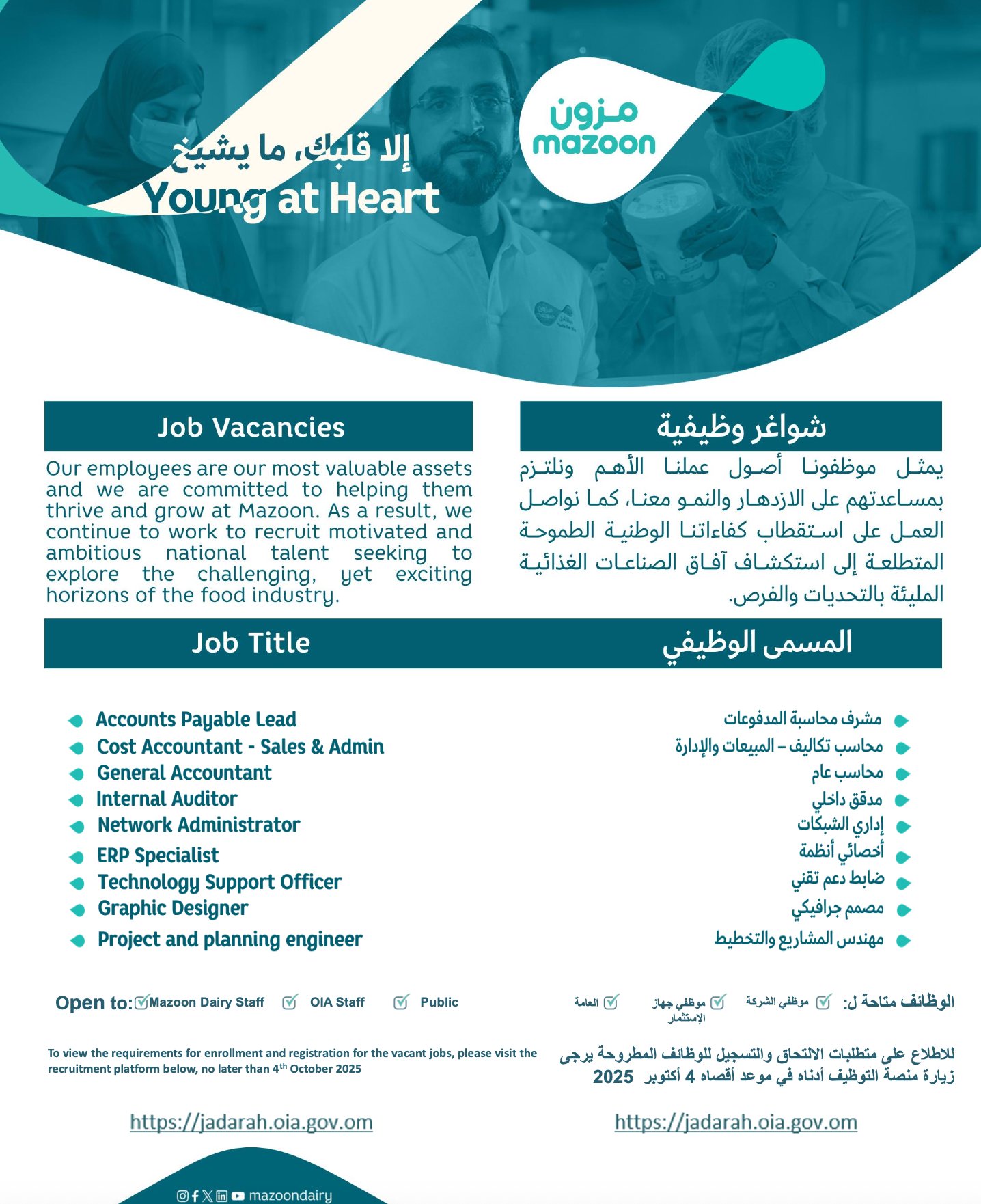 وظائف شركة مزون للالبان في سلطنة عمان اليوم للجنسين
