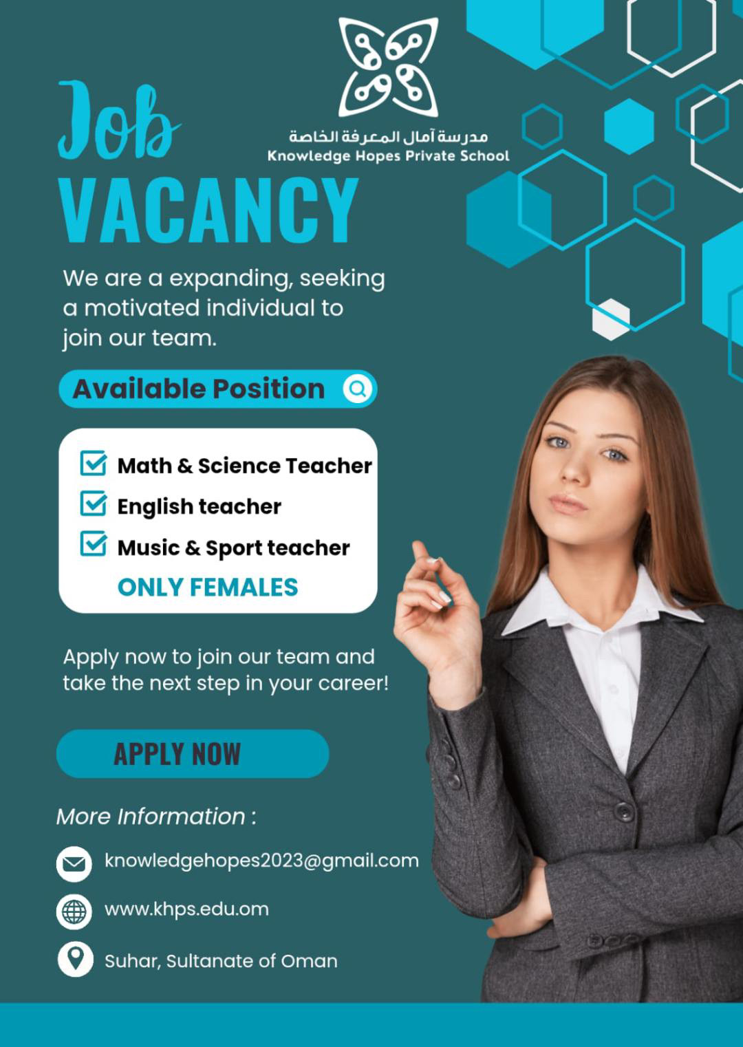 وظائف تدريس في صحار لدي مدرسة آمال المعرفة الخاصة