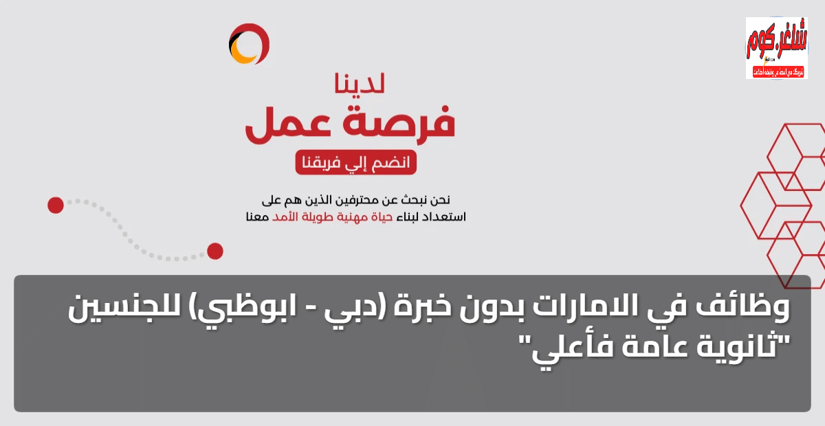 تعلن جهة خاصة عن وظائف في الامارات بدون خبرة سابقة لكل من الذكور والإناث وذلك للعمل في أبوظبي ودبي وللحاصلين علي ثانوية عامة فأعلي وبداوم كلي وبراتب مجزي وسننشر لكم تفاصيل الوظائف المطلوبة ورابط التقديم عليها.